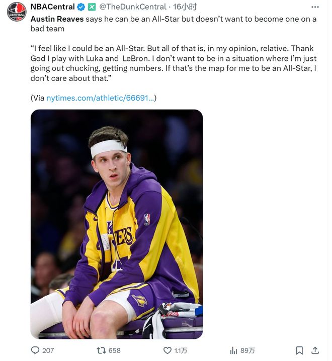 湖人对阵太阳首发:里夫斯、拉拉维亚、艾顿、范德彪、八村